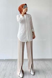 Lamelif Manşeti Biyeli Tunik Beyaz