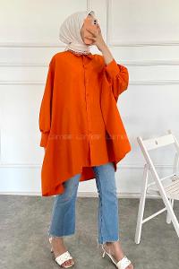 Modalamelif Oversize Önü Kısa Arkası Uzun Yara_sa Kol Tunik Turuncu