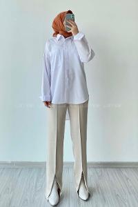 Lamelif Müslin Tesettür Gömlek Beyaz