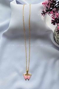 Modalamelif Özel Tasarım Pembe Kelebek Kolye
