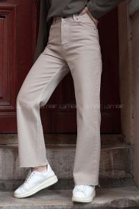 Lamelif Kesik Paça Fit Jean Krem