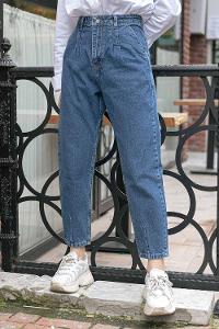 Lamelif Kıvrık Paça Jean Koyu Mavi
