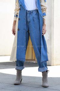 Modalamelif Paça Pensli Mom Jean Kot Mavisi