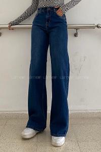 Lamelif Paçası Katlı Kot Pantolon Koyu Mavi