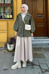 Lamelif Pamela Balon Kol Trenç Asker Yeşili