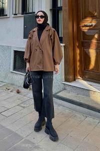 Lamelif Pamela Balon Kol Trenç Vizonrengi
