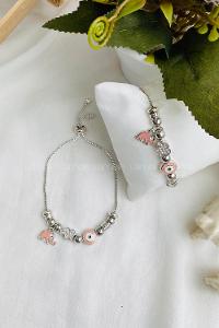 Lamelif Pembe Renkli Çiçek Desen Mineli Bilezik