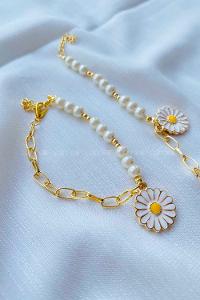 Lamelif Sarı Renkli Çiçek Desen Mineli Bilezik
