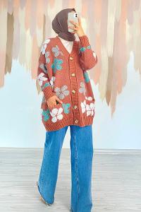 Modalamelif Papatya Desen Cepli Hırka Gül