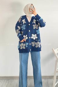 Modalamelif Papatya Desen Cepli Hırka İndigo