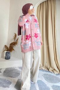 Modalamelif Papatya Desen Cepli Hırka Pudra