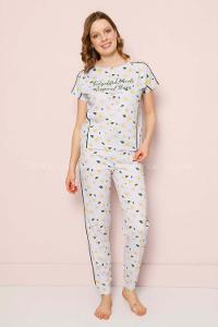 Lamelif Tavşan Desenli Pijama Takımı Antrasit