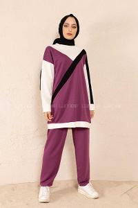 Lamelif Kapüşonlu Kanguru Cep İkili Takım Bordo