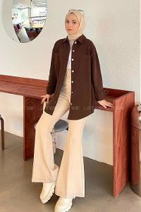 Lamelif Omuz Vatka Detaylı Tesettür Gömlek Acı Kahve