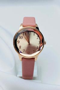 Modalamelif Pembe Deri Kordon Kristal Cam Saat
