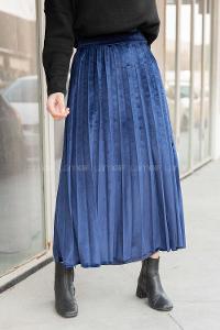 Modalamelif Pileli Kadife Etek Lacivert