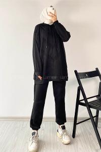 Modalamelif Pis Dikişli Kapüşonlu İkili Takım Siyah