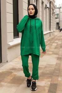 Modalamelif Pis Dikişli Kapüşonlu İkili Takım Yeşil