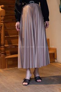 Lamelif Pliseli Etek Vizonrengi