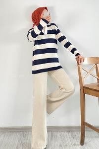 Modalamelif Polo Yaka Çizgi Şeritli Ashlee Sweat Beyaz-Lacivert
