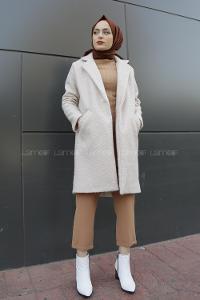 Lamelif Balon Kol Örme Kaşe Kaban Bej