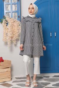Lamelif Manşeti Biyeli Tunik Lacivert