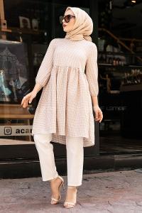 Lamelif Kol Baskılı Tunik Bej