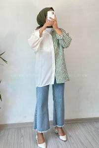 Modalamelif Pötikare Garnili Krinkıl Gömlek Çağla Yeşili