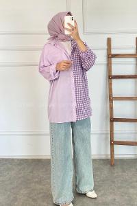 Modalamelif Pötikare Garnili Krinkıl Gömlek Lila