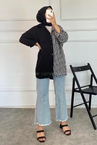 Modalamelif Pötikare Garnili Krinkıl Gömlek Siyah