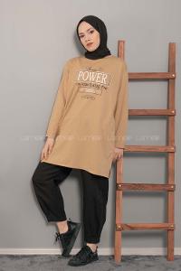 Modalamelif Power Baskı Sweatshirt Camel
