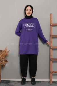 Lamelif Yırtmaç Detaylı Sweat Mor