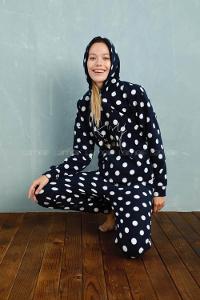 Modalamelif Puantiyer Desenli Kapüşonlu Takım Lacivert