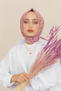 Lamelif Çiçek Desen Pamuk Şal Şeker Pembe