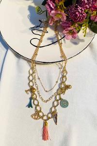 Modalamelif Püskül Detaylı Üçlü Zincir Kolye