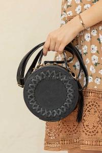 Modalamelif Püsküllü Silindir Çapraz Çanta Siyah