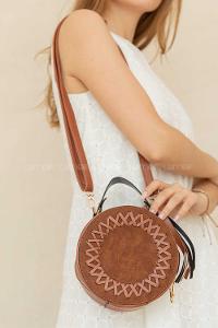 Modalamelif Püsküllü Silindir Çapraz Çanta Taba
