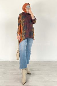 Modalamelif Püskürtme Boya Desen Tarz Gömlek Koyu Kahverengi