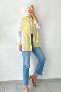 Modalamelif Renk Garnili Çizgi Deseen Detaylı Tek Cepli Gömlek Sarı