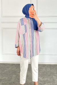 Modalamelif Renk Garnili Çizgili Gömlek Mint Yeşili