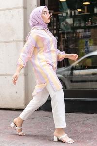 Modalamelif Renk Garnili Kapşonlu Tunik Lila