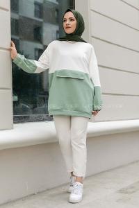 Modalamelif Renk Garnili Kol Lastikli Sweat Çağla Yeşili