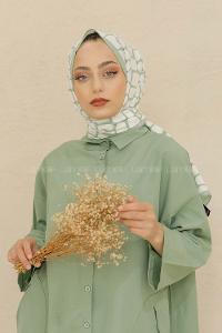 Modalamelif Renkli Baskılı Medine İpeği Şal Dama Desen Mint