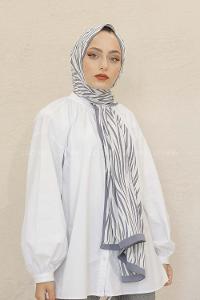 Modalamelif Renkli Baskılı Medine İpeği Şal Monokrom Desen Füme