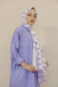 Modalamelif Renkli Baskılı Medine İpeği Şal Paralel Desen Lavanta