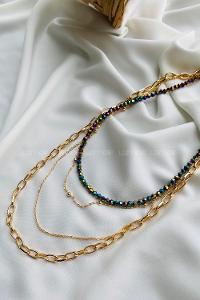 Lamelif Gold Doğal Taş 3lü Kombin Kolye Seti