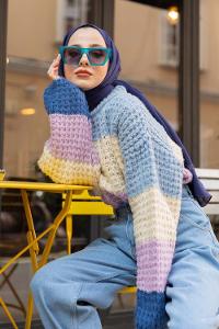 Lamelif Çizgili BalIkçı Kazak Lacivert