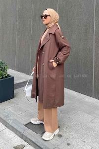 Lamelif Kol Kemerli Trençkot Acı Kahve