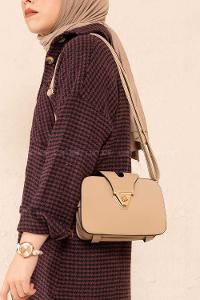 Lamelif Mini Kutu Çapraz Çanta Kadın Vizonrengi