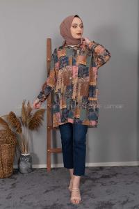 Lamelif Omuz Vatka Detaylı Tesettür Gömlek Acı Kahve
